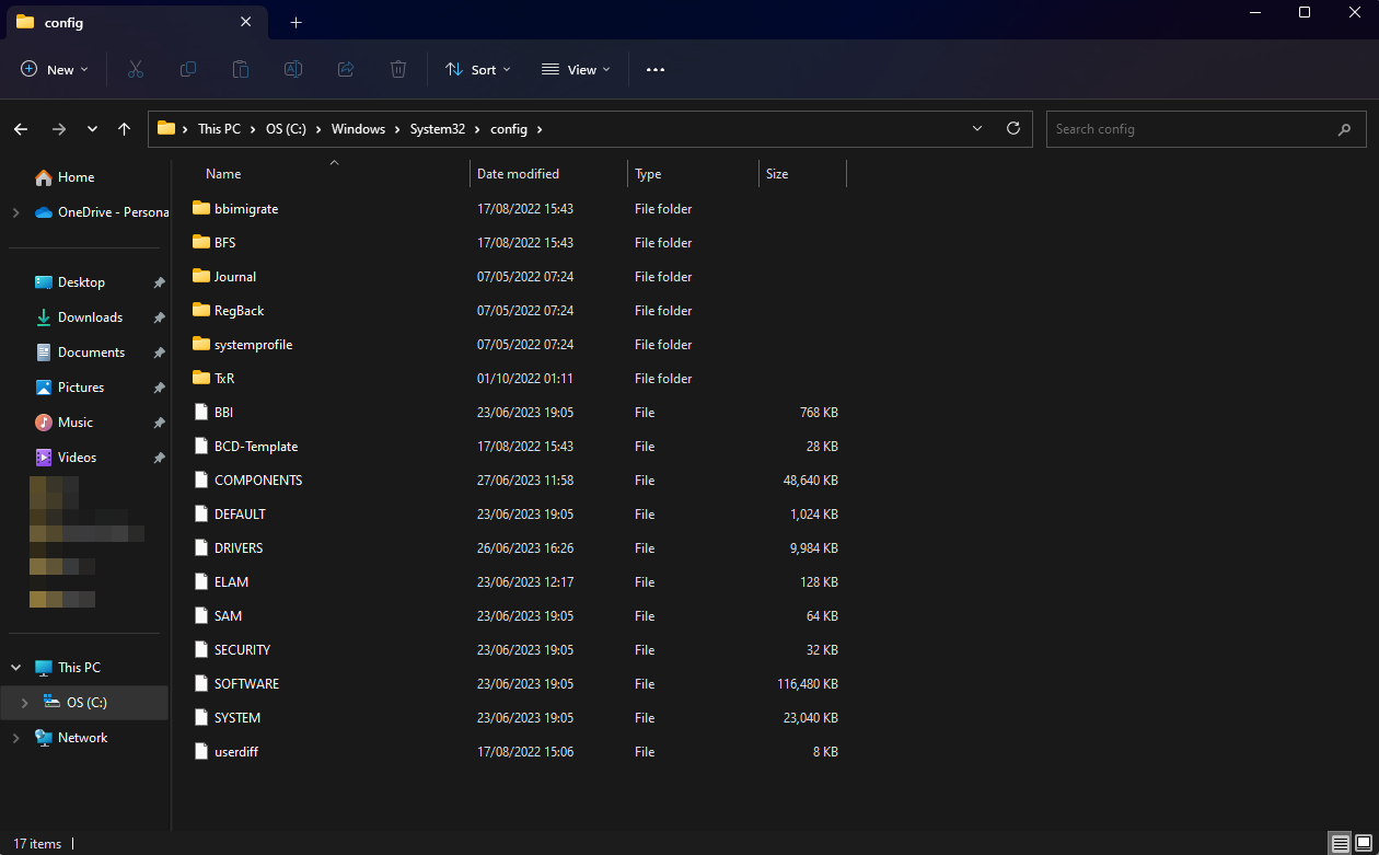 The registry in Windows 11 is kept as a collection of files in the following path: C:\Windows\System32\Config