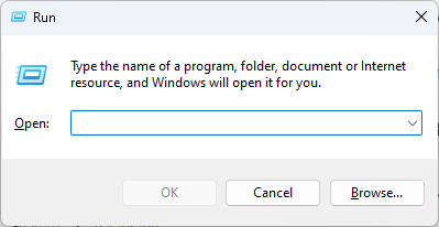 - Press the Win + R keys to open the Run dialog box.