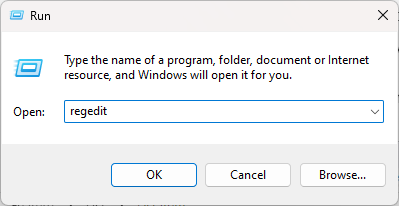 - Enter regedit and press Enter.