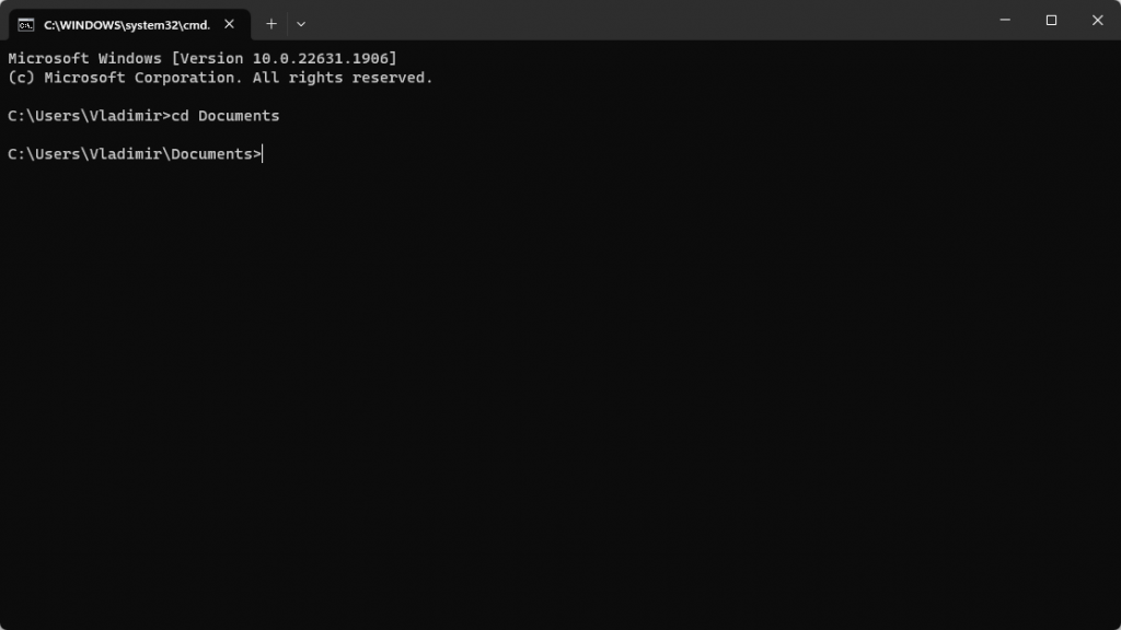 For example, if you want to save the backup file in the Documents folder, type cd Documents and click Enter.