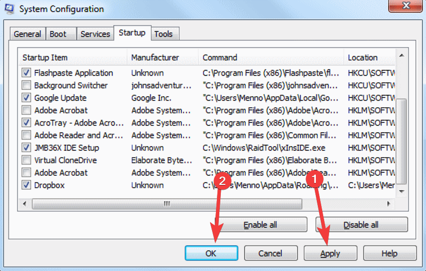 7. Restart your PC and test if the option appears. If it does, you will need to gradually re-activate startup processes until you find the one that triggers the error. If it doesn’t affect it, then follow the next methods.