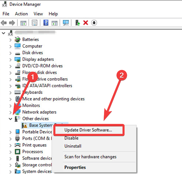 3. Right-click on the device and choose Update Driver.