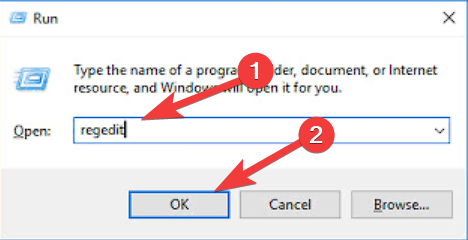 2. Type regedit.exe and click OK to open the Registry Editor.
