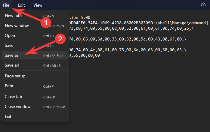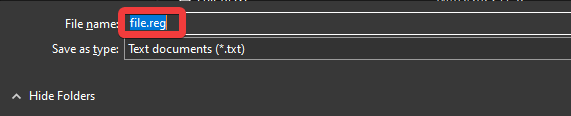 5. Set the file name to file.reg, and click Save.