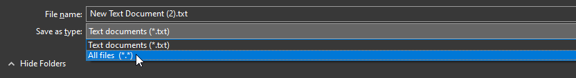 4. Click the Save as area, and choose Save as type: All files.