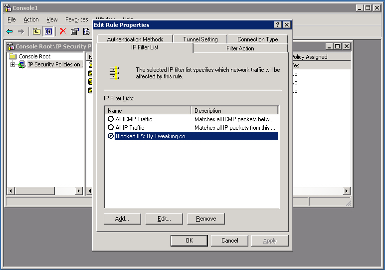 How to remove IPs from the Windows IP Security (IPSec) Added by the Tweaking.com – Block IP Tool