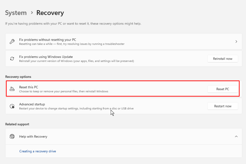 - Choose to keep your files or remove everything, and follow the instructions on-screen.