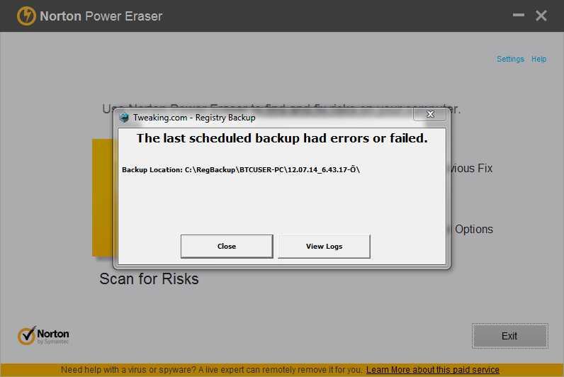 Note : I can confirm that the problem is caused by the NPE program, a pop-up error messages appear when both NPE & Registry Backup programs are working at the same time! Both are pop-up when I run a scan with the NPE program / ​​when your program is doing a restore point in the next system reboot!