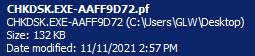 Next, ran in Safe mode, not from USB.  See attached, which is a .pf and I can't read.